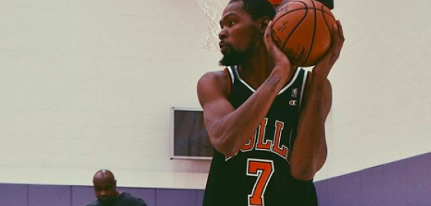 Kevin Durant se encuentra en pleno proceso de recuperación de su lesión en el tendón de Aquiles. El jugador de los Brooklyn Nets, al que la semana pasada podíamos ver entrenándose lanzando a canasta, se encuentra estos días en Los Angeles continuando con su recuperación. Allí lo hemos podido ver con una camiseta mítica de Toni Kukoc con los Bulls.